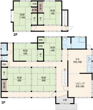| 間取内訳/間取備考 | LDK16.0帖 / 和6.0帖 / 和6.0帖 / 和8.0帖 / 和8.0帖 / 和7.5帖 / 和6.0帖 / |