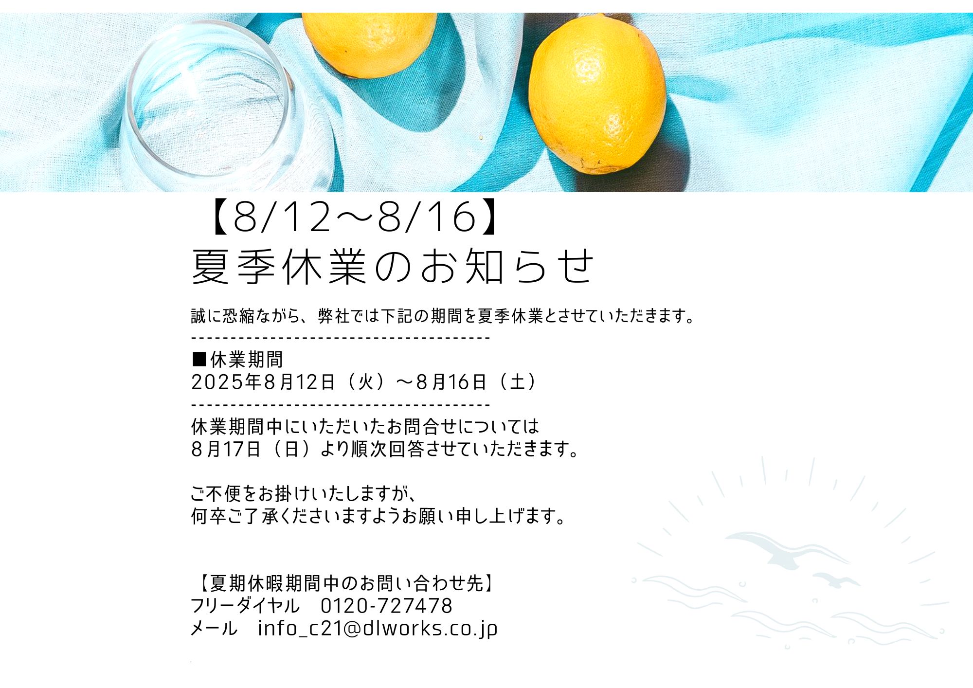 誠に恐縮ながら、弊社では下記の期間を夏季休業とさせていただきます。
